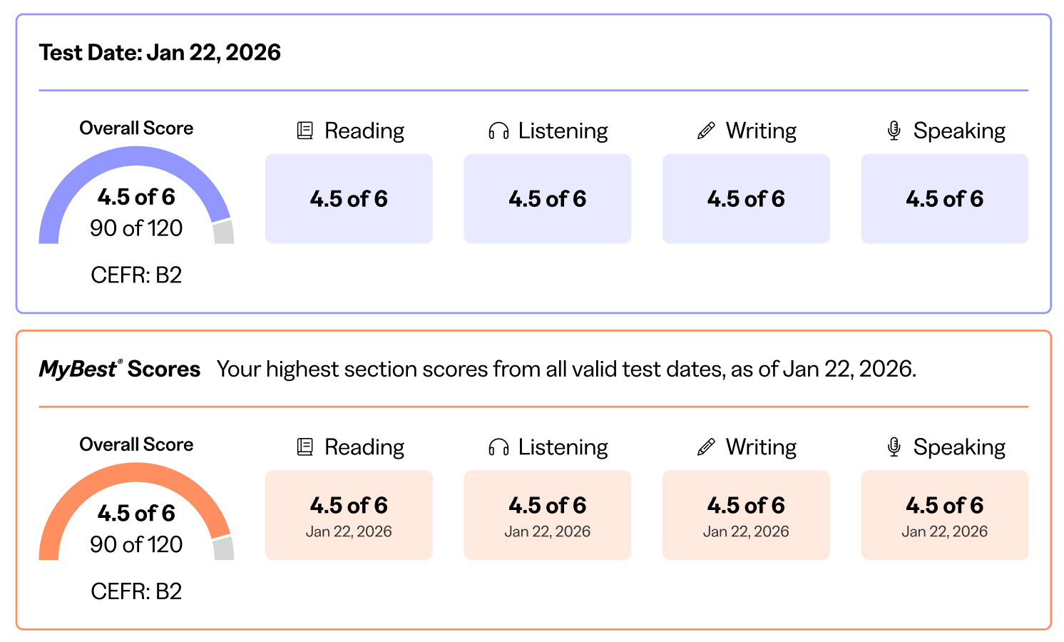 Your TOEFL iBT® scores do more than just measure English, they help you stand out to colleges and universities around the world. Each score provides: